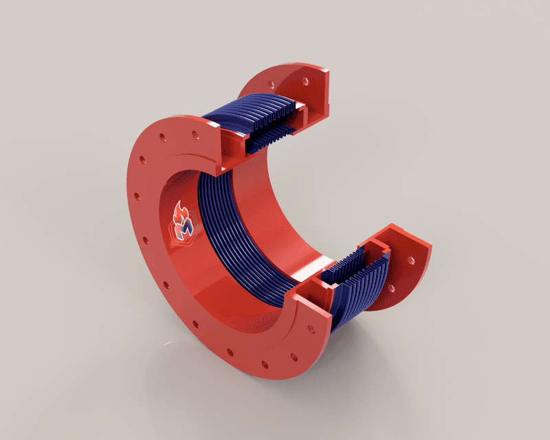 Gimbal Expansion Joints are designed to allow angular movement in any plane by the use of two pairs of hinges affixed to a common floating gimbal ring.