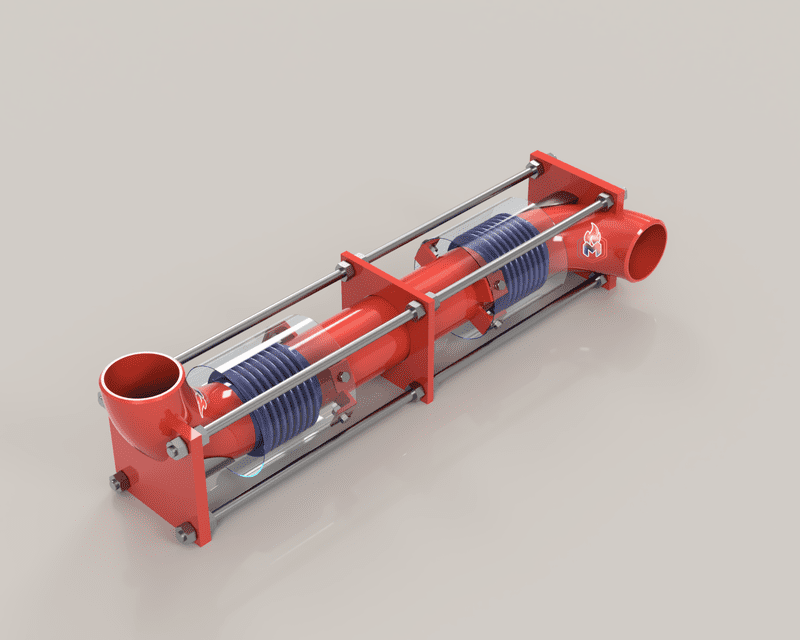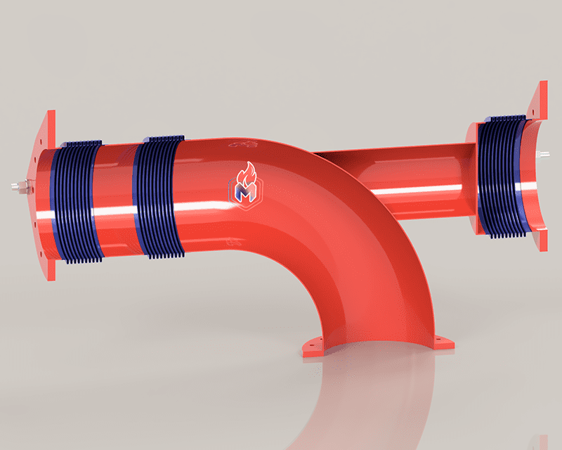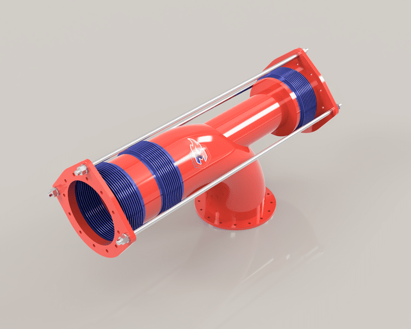 The amount of lateral deflection depends on the amount of angulation each bellows can absorb and the length or the central pipe. The amount of lateral deflection capability can be increased or decreased by simply changing the length of the spool pipe and the thermal expansion of the central pipe is taken by the bellows elements.