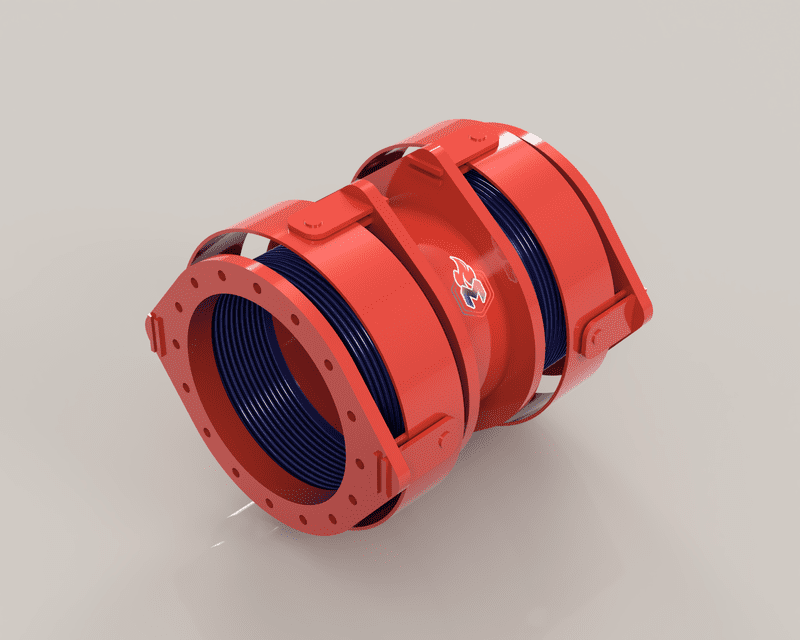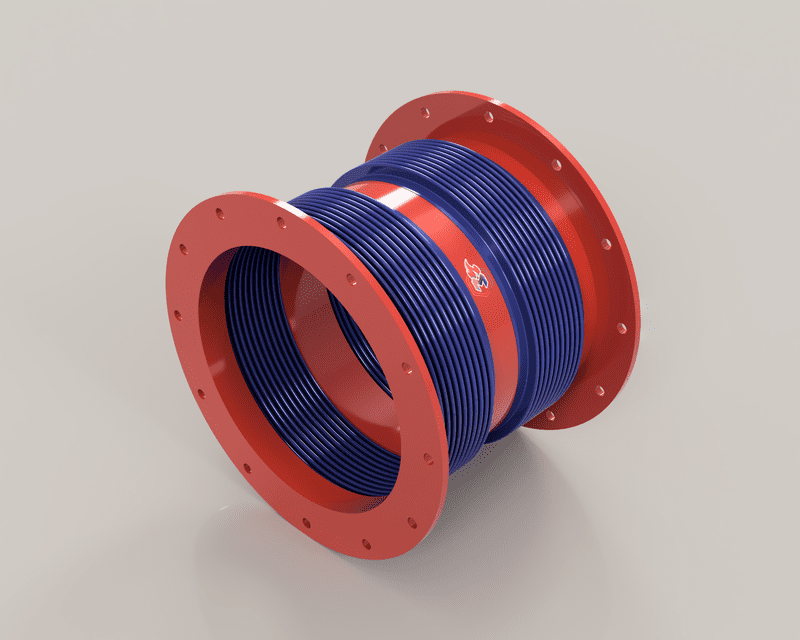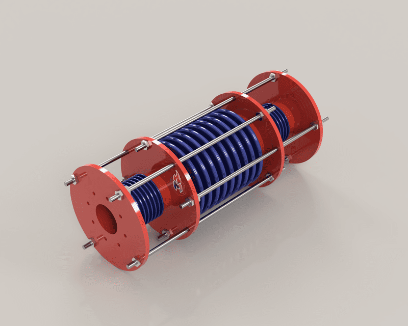 A double gimbal expansion joint is basically a two single gimbal expansion joints and an intermediate pipe that joins them. This type of Expansion Joint can absorb a large lateral movement in any plane and angular movement in any direction.