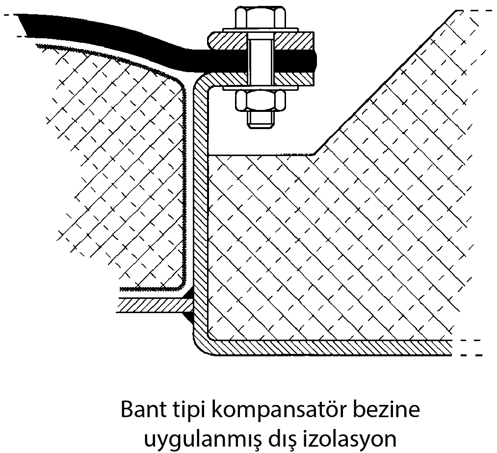 3. Isı izolasyon Katmanı: Üzerinde bulunan katmanları, akışkanın yüksek sıcaklığından korur ve aynı zamanda kompansatör bezinin dış yüzey sıcaklığının, işçi güvenliği açısından uygun sıcaklıklara
