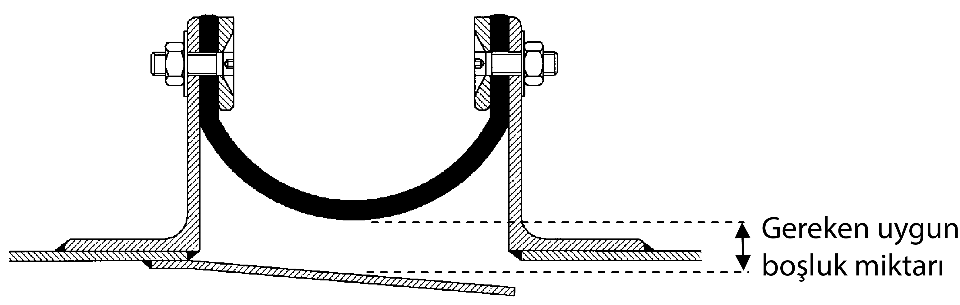 Pozitif basıncın yüksek eksenel hareketle birleştiği durumlarda, cıvata başlarının kompansatör bezinin dış katmanına zarar vermesini önlemek için havşa başlı cıvatalar kullanılmalıdır: